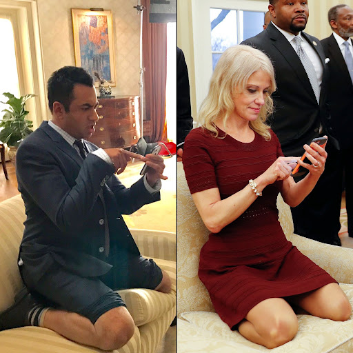 Kal Penn Spoofs Kellyanne Conway S Couch Photo On Designated Survivor Set Designated Survivor Survivor Spoofs
